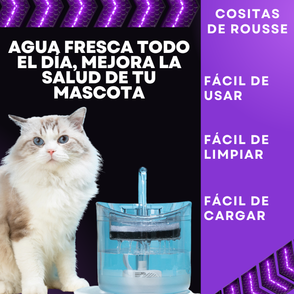 - Flujo continuo de agua que estimula a los gatos a beber más.